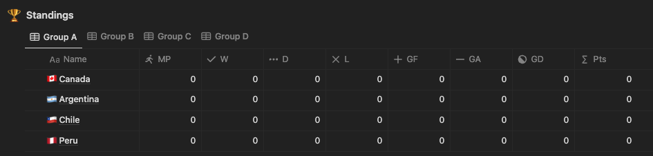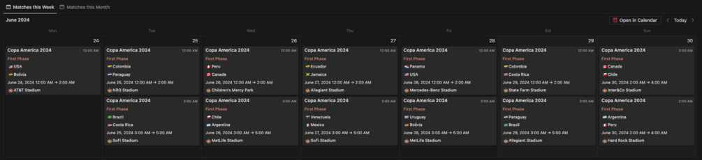 Your personal COPA AMERICA 2024 dashboard, directly in Notion!