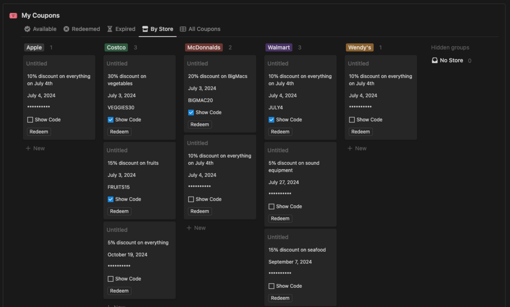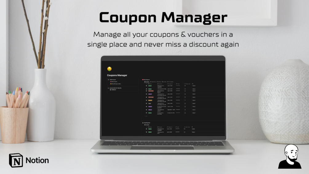 Introducing Coupon Manager, your personal coupon and voucher organizer, directly in Notion!